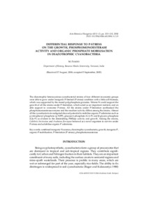 Pandey, M. (2006) Differential response to P-stress on the growth, phosphomonoesterase activity and organic phosphate mobilisation in diazotrophic cyanobacteria. Acta Botanica Hungarica, 48 (1-2). pp. 103-118. ISSN 0236-6495