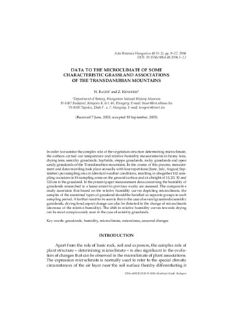 Bauer, N. and Kenyeres, Z. (2006) Data to the microclimate of some characteristic grassland associations of the Transdanubian mountains. Acta Botanica Hungarica, 48 (1-2). pp. 9-27. ISSN 0236-6495