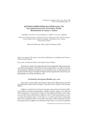 Borhidi, A. and A. Guadarrama, M. de los and Ortiz G., G. and Jiménez, C. (2006) Estudios sobre Rubiáceas Mexicanas, VII. Acta Botanica Hungarica, 48 (1-2). pp. 39-41. ISSN 0236-6495