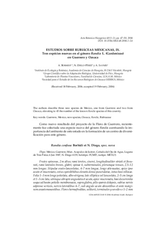 Borhidi, A. and Diego-Pérez, N. and Saynes, A. (2006) Estudios sobre Rubiáceas Mexicanas, IX. Acta Botanica Hungarica, 48 (1-2). pp. 47-50. ISSN 0236-6495