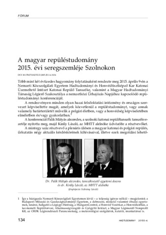 Óvári, Gyula and Szilvássy, László (2015) A magyar repüléstudomány 2015. évi seregszemléje Szolnokon. HADTUDOMÁNY: A MAGYAR HADTUDOMÁNYI TÁRSASÁG FOLYÓIRATA, 25 (3-4). pp. 134-135. ISSN 1215-4121