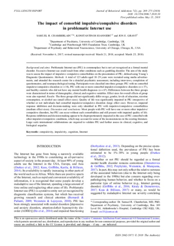 Chamberlain, Samuel R. and Ioannidis, Konstantinos and Grant, Jon E. (2018) The impact of comorbid impulsive/compulsive disorders in problematic Internet use. Journal of Behavioral Addictions, 7 (2). pp. 269-275. ISSN 2062-5871