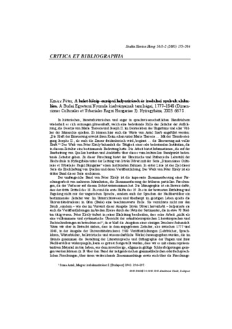 Nyomárkay, István and Zoltán, András and Fried, István and Reinhart, Johannes and Lukács, István and Dukkon, Ágnes and Eisemann, György and Kalafatics, Zsuzsa and Kšicová, Danuše (2005) Critica et bibliographia. Studia Slavica, 50 (1-2). pp. 175-206. ISSN 0039-3363