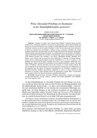 Serhij, Wakulenko (2005) Wäre Alexander Potebnja ein Kantianer in der Sprachphilosophie gewesen? Studia Slavica, 50 (3-4). pp. 211-233. ISSN 0039-3363