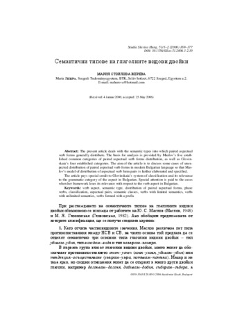 Zsereva, Maria (2006) Семантични типове на глаголните видови двойки. Studia Slavica, 51 (1-2). pp. 169-177. ISSN 0039-3363