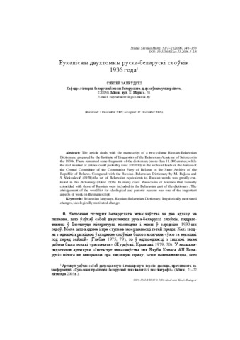 Zaprudski, Sjarhej (2006) Рукапісны двухтомны руска-беларускі слоўнік 1936 года. Studia Slavica, 51 (1-2). pp. 141-153. ISSN 0039-3363