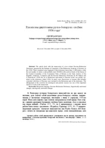 The article deals with the manuscript of a two-volume Russian-Belarusian Dictionary, prepared by the Institute of Linguistics of the Belarusian Academy of Sciences in the 1930s. There remained some fragments of the dictionary (more than 11.000 entries; while the real number of entries could probably total 100.000) in the archival funds of the bureau of the Central Committee of the Communist Party of Belarus in the State Archive of the Republic of Belarus. Compared with the Russian-Belarusian Dictionary by M. Bajkou and S. Niekraševič (1928) the set of Belarusian equivalents to Russian words was greatly curtailed in this dictionary (dated 1936). In many cases Russicisms or lexemes that formally coincided with those of Russian were included in the Belarusian part of the dictionary. The abridgement of the word-list for ideological and puristic reasons was one of the important aspects of work on the manuscript.