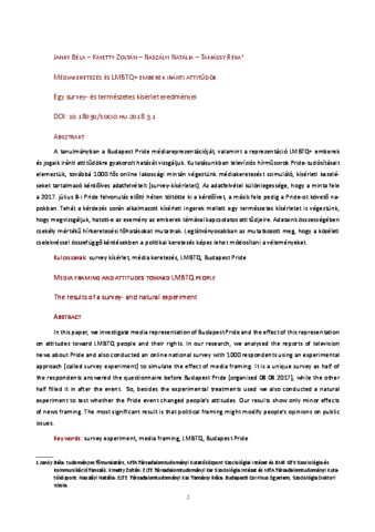 Janky, Béla and Kmetty, Zoltán and Naszályi, Natália and Tamássy, Réka (2018) Médiakeretezés és LMBTQ+ emberek iránti attitűdök : Egy survey- és természetes kísérlet eredményei = Media framing and attitudes toward LMBTQ people : The results of a survey- and natural experiment. SOCIO.HU : TÁRSADALOMTUDOMÁNYI SZEMLE (3). pp. 1-24. ISSN 2063-0468