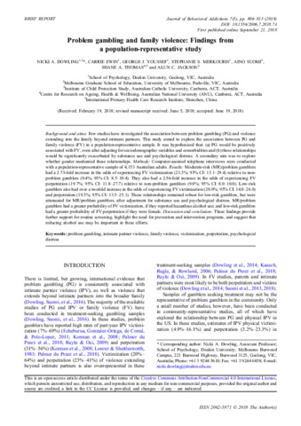 Dowling, Nicki A. and Ewin, Carrie and Youssef, George J. and Merkouris, Stephanie S. and Suomi, Aino and Thomas, Shane A. and Jackson, Alun C. (2018) Problem gambling and family violence: Findings from a population-representative study. Journal of Behavioral Addictions, 7 (3). pp. 806-813. ISSN 2062-5871
