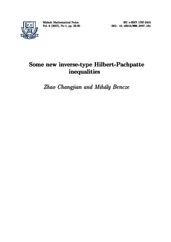 Bencze, Mihály and Changjian, Zhao (2007) Some new inverse-type Hilbert-Pachpatte inequalities. Miskolc Mathematical Notes, 8 (1). pp. 23-30. ISSN 1787-2405 (print), 1787-2413 (elecronic)