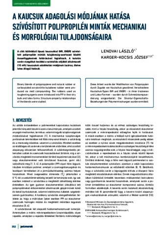 Lendvai, László and Karger-Kocsis, József (2018) A kaucsuk adagolási módjának hatása szívósított polipropilén minták mechanikai és morfológiai tulajdonságaira. POLIMEREK, 4 (11). pp. 352-356. ISSN 2415-9492