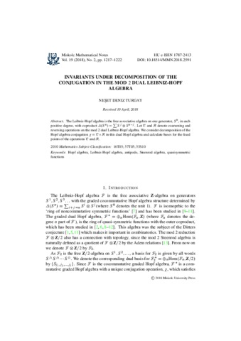 Turgay, Neset Deniz (2018) Invariants under decomposition of the conjugation in the mod 2 dual Leibniz-Hopf Algebra. Miskolc Mathematical Notes, 19 (2). pp. 1217-1222. ISSN 1787-2413