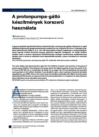 A gyomorsavgátlás legszélesebb körben elterjedt formája a protonpumpa gátlása. Világszerte az egyik legtöbbet forgalmazott gyógyszerkészítmény-családról van szó. A folyóirat 2018. évi 3. számában megjelent közleménnyel (Gelley A, et al. 144–149) kapcsolatban érkezett megkeresés a szerkesztőséghez, ennek kapcsán éreztük fontosnak bizonyos gyakorlati alapelvek összegzését. Az utóbbi években előtérbe került a tartósan alkalmazott PPI-készítmények esetleges nemkívánatos mellékhatásainak kérdése, ezért is fontos az indikációk minél átgondoltabb kezelése, a józan, mértéktartó és racionális alkalmazás.