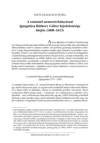 Mátyás-Rausch, Petra (2013) A szatmári nemesércbányászat igazgatása Báthory Gábor fejedelemsége idején (1608-1613). TÖRTÉNELMI SZEMLE (3). 491 -517. ISSN 0040-9634