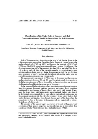 MICHÉLI, E. and FUCHS, M. and HEGYMEGI, P. and STEFANOVITS, P. (2006) Classification of the Major Soils of Hungary and their Correlation with the World Reference Base for Soil Resources (WRB). Agrokémia és talajtan, 55 (1). pp. 19-28. ISSN 0002-1873
