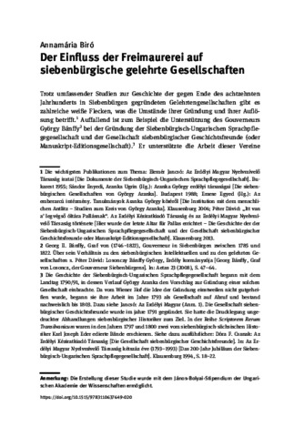 - Der Einfluss der Freimaurerei auf siebenbürgische gelehrte Gesellschaften. (deposited 14 Sep 2019 08:05) [Currently Displayed]